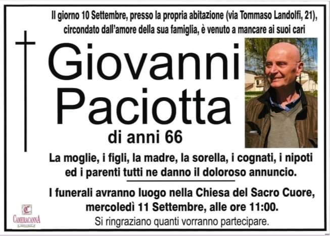 La Caritas diocesana di Frosinone-Veroli-Ferentino annuncia la morte del Vicedirettore Giovanni Paciotta.